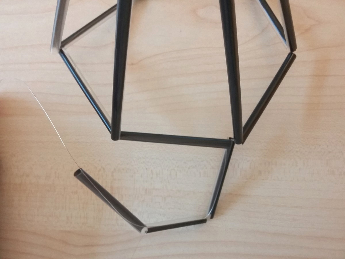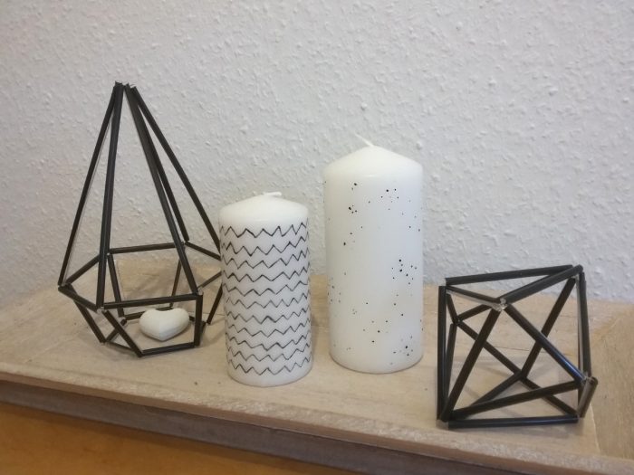Die Farbe der Strohhalme kannst du nach eigenem Geschmack wählen. Ich hatte zufällig schwarze zu Hause und das Ergebnis gefällt mir ziemlich gut. Man kann die fertigen Diamanten aber sonst auch mit Sprühlack in einer beliebigen Farbe umfärben. Ich stelle mir gold-, silber- oder bronzefarbene Diamanten sehr schön vor und habe bereits entsprechende Exemplare auf Pinterest gesehen. Wenn man die Diamanten ansprüht, fällt übrigens auch der Draht an den Ecken weniger auf. Mich stört das aber zur Zeit nicht, weshalb meine zwei „Diamanten“ erstmal so bleiben dürfen, wie sie sind.
