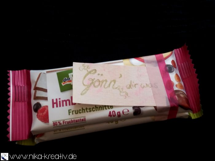 Für das Getränk ist schon gesorgt, jetzt fehlt noch der Snack. Diese zwei leckeren Riegel habe ich bei dm gefunden. Und ja, den oberen habe ich tatsächlich (auch) wegen seiner farblich passenden Verpackung gekauft…