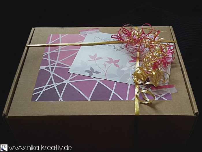 Nachdem ich ein bisschen Tetris-mäßig alles in das Paket gepuzzelt hatte, habe ich es natürlich noch farblich passend verpackt und eine Karte dazugelegt. Fertig ist ein tolles, vielseitiges Geschenk!
